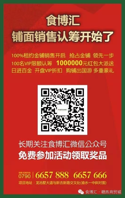 “食博匯,惠天下,聚名優(yōu),保民生”是食博匯矢志不渝的終極愿景,食博匯100%帶租約商鋪認(rèn)籌已正式啟動(dòng),熱切歡迎具有超規(guī)模實(shí)力的品牌代理商,具有投資眼光和經(jīng)營(yíng)實(shí)力的機(jī)構(gòu)和個(gè)人,國(guó)內(nèi)外名優(yōu)品牌食品副食百貨生產(chǎn)商家前來咨詢投資。