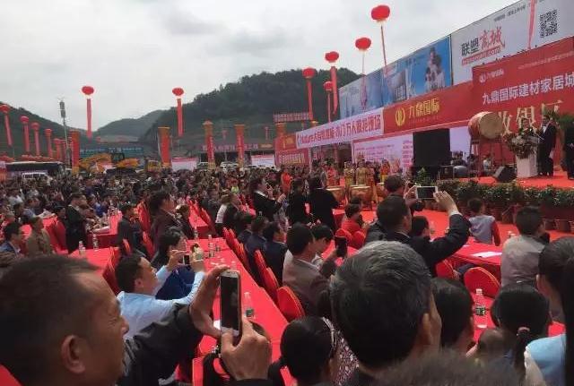 隨著各領(lǐng)導(dǎo)發(fā)言完畢,遵義縣工商聯(lián)王主席、遵義市室內(nèi)裝飾協(xié)會副會長舒明副會長、遵義市建筑裝飾協(xié)會常務(wù)秘書長馬靜秘書長,九鼎國際建材家居城董事長朱冬林先生在禮儀小姐的引導(dǎo)下走上臺,在現(xiàn)場群眾的矚目關(guān)注中,按下了水晶球,剎那間煙花四射,鑼鼓震天,現(xiàn)場群眾齊鼓掌,表示九鼎國際建材家居城一期陶瓷·潔具批發(fā)市場今日起正式揚(yáng)帆起航,距離打造咱遵義建材商家二次創(chuàng)富平臺,打造40萬平方米黔北地區(qū)建材家居市場領(lǐng)航者又邁進(jìn)了大大的一步,開啟了九鼎國際建材家居城榮耀征程的篇章。