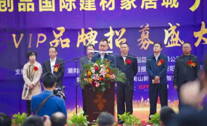 “我們項目的初衷就是為了給家鄉(xiāng)人民奉獻(xiàn)一座現(xiàn)代化的、綜合的、高品位的并且能給予衡山人民家裝便利的建材家居商城,讓衡山人民也能擁有大城市才有的星級購物體驗和優(yōu)質(zhì)物業(yè)投資。七年磨一劍,鑄就了我們創(chuàng)品人百折不撓的個性,今日盛大起航,創(chuàng)品正式對衡山宣布,我們真的來了。我們厚積薄發(fā),向衡山人民展示真正的創(chuàng)品品質(zhì)、創(chuàng)品速度和創(chuàng)品文化,以創(chuàng)品精神宣告衡山父老鄉(xiāng)親,我們創(chuàng)品國際建材家居城終將無愧于創(chuàng)品這個名字!”