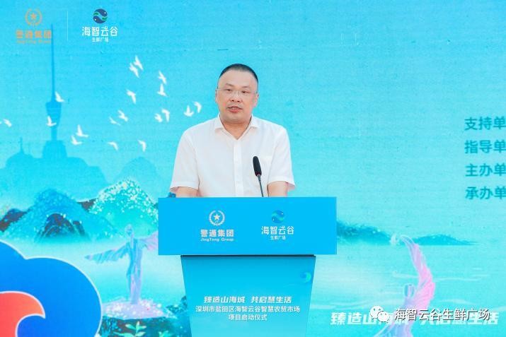 鹽田區(qū)委常委、區(qū)委(區(qū)政府)辦公室主任肖凱在致辭中表示,近年來,鹽田區(qū)圍繞全面構建“5+3+1”現(xiàn)代產業(yè)體系,全力推進沙頭角深港國際消費合作區(qū)和全球海洋中心城市核心區(qū)建設,先后打出推動經濟高質量發(fā)展的“組合拳”,并取得了積極成效。招商引資勢頭強勁,吸引了一大批大企業(yè)、大集團投資合作。熱忱歡迎廣大朋友到鹽田投資發(fā)展,將一如既往地為投資者提供最優(yōu)質的服務、最優(yōu)良的投資環(huán)境,實現(xiàn)互利共贏、共同發(fā)展。海智云谷智慧農貿市場項目作為鹽田區(qū)一項重要民生工程,成為RCEP 農業(yè)貿易合作 (深圳鹽田)中心落地鹽田后的平臺和抓手。將打造鹽田區(qū)市場規(guī)模最大的農產品交易展示中心,助力鹽田區(qū)建設“全球海洋中心城市核心區(qū)”。也希望警通集團以項目啟動為契機,抓緊時機,加快進度,使項目早日建成、早見成效。希望項目所在街道、區(qū)相關部門要牢固樹立大局意識、服務意識,努力為項目建設創(chuàng)造良好條件。