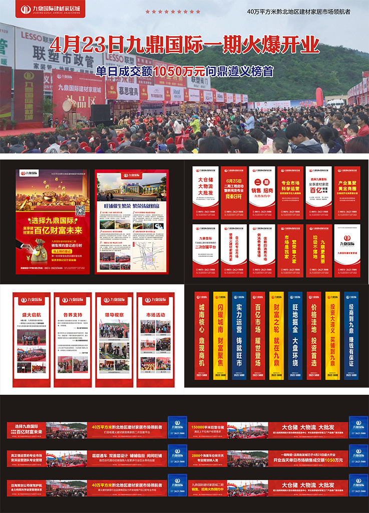 遵義九鼎國(guó)際建材家居城項(xiàng)目位于遵義市南部新城高新技術(shù)產(chǎn)業(yè)園和平大道中段,由遵義聚晨置業(yè)投資有限公司投資10億元傾力打造。項(xiàng)目總占地面積315多畝,容積率2.0,總建筑面積41.958萬(wàn)平方米。項(xiàng)目一期已建成6萬(wàn)平方米大型倉(cāng)儲(chǔ)帶門(mén)面市場(chǎng),吸納上百家陶瓷潔具建材家居行業(yè)龍頭進(jìn)駐,并將于4月23日正式開(kāi)業(yè)。二期項(xiàng)目26萬(wàn)平米市場(chǎng)帶倉(cāng)儲(chǔ)全面建成后將吸納數(shù)千行業(yè)龍頭商戶進(jìn)駐,并將集交易展示、倉(cāng)儲(chǔ)物流、金融服務(wù)、電子商務(wù)、信息交流、市場(chǎng)管理、酒店餐飲、商務(wù)配套等八大功能于一體,成為黔北首家建材家居工廠產(chǎn)品推廣展示基地,遵義市最大的建材家居批發(fā)兼零售市場(chǎng),輻射周邊800萬(wàn)人口,帶動(dòng)區(qū)域未來(lái)商業(yè)強(qiáng)勁發(fā)展和鼎盛消費(fèi)輻射力,引領(lǐng)遵義市專業(yè)市場(chǎng)發(fā)展新方向,新潮流!